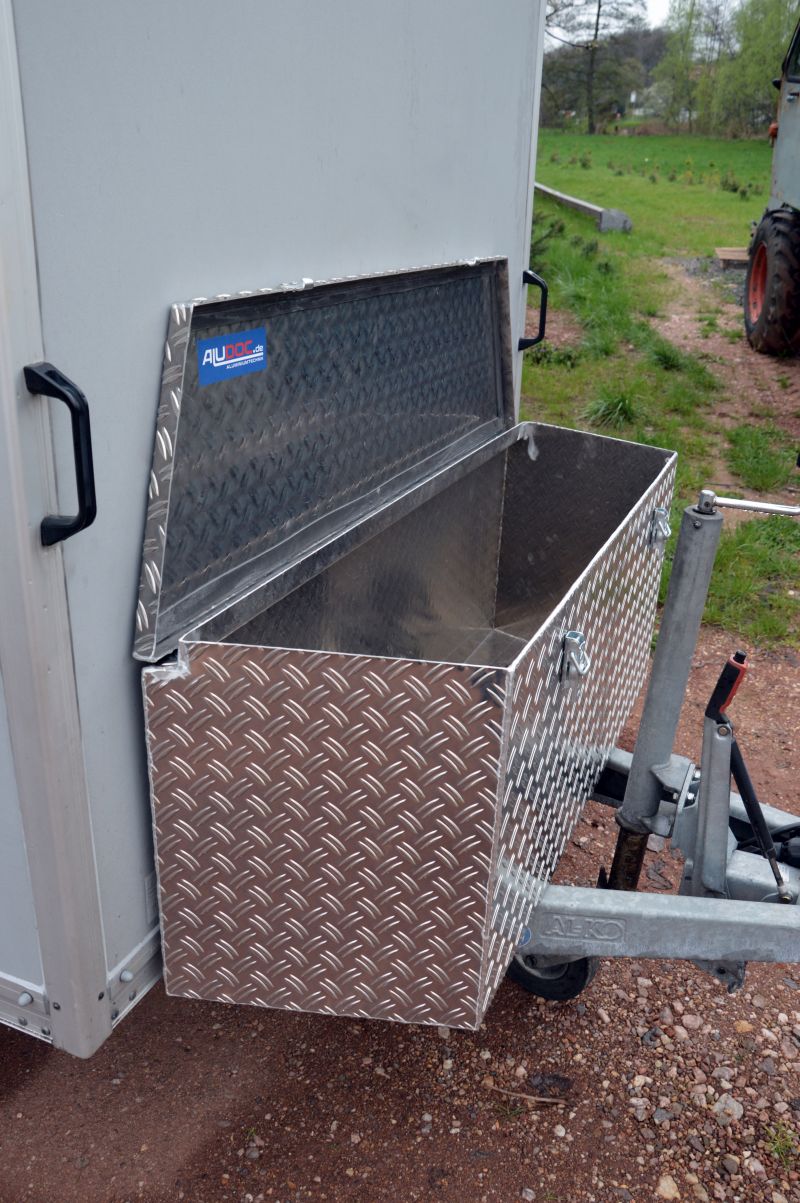 Unsere Deichselboxen werden aus 2,5x4mm Aluminium-Riffelblech gefertigt und sind vollständig verschweißt.