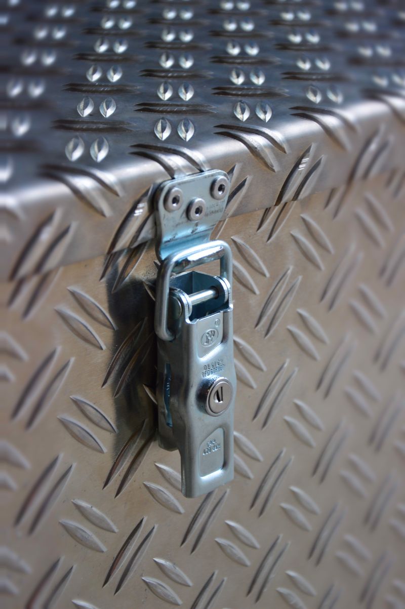 Aufgrund der hochwertigen Verarbeitung sind unsere Aufbewahrungsboxen bis 120kg belastbar. Ein stabiler Spannbügelverschluss mit gleichschließenden Sicherheitsschlössern sorgt für die nötige Sicherheit. Ein Vorhängeschloss wird nicht mehr benötigt.